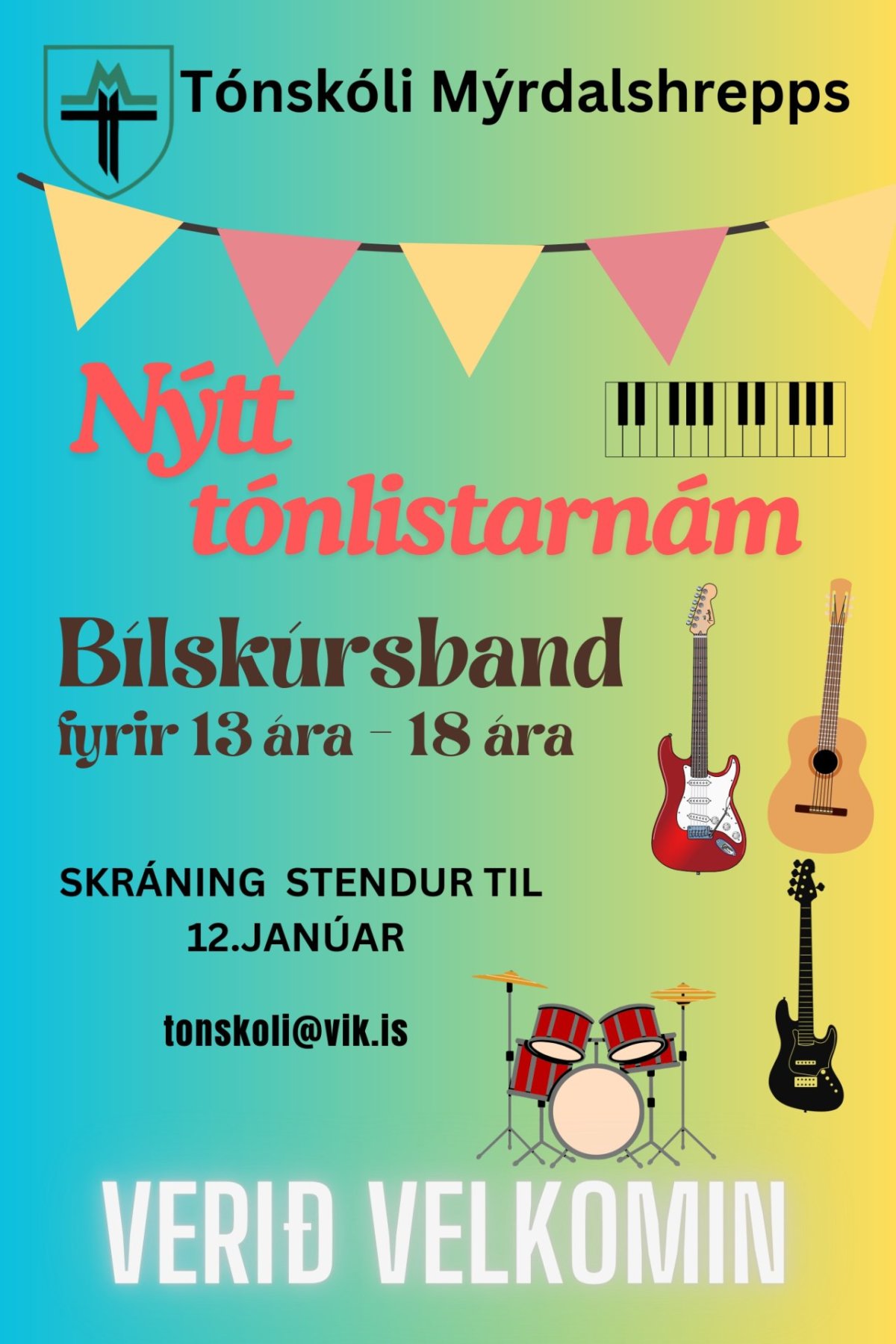 Bílskúrsband – nýtt tónlistarnám fyrir 13 – 18 ára.
