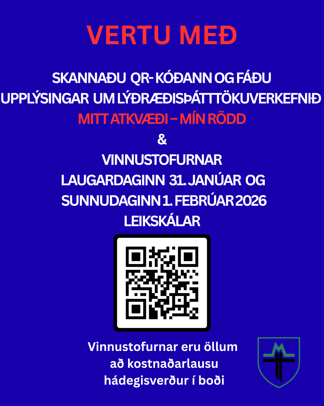 Ef þú hefur áhuga bjóðum við þér að skrá þig hér að neðan til að taka þátt í vinnustofum sem við munum halda laugardaginn 31. janúar og sunnudaginn 1. febrúar 2026 og hvernig þú getur tekið þátt. Vinnustofurnar eru öllum að kostnaðarlausu og hádegisverður í boði.