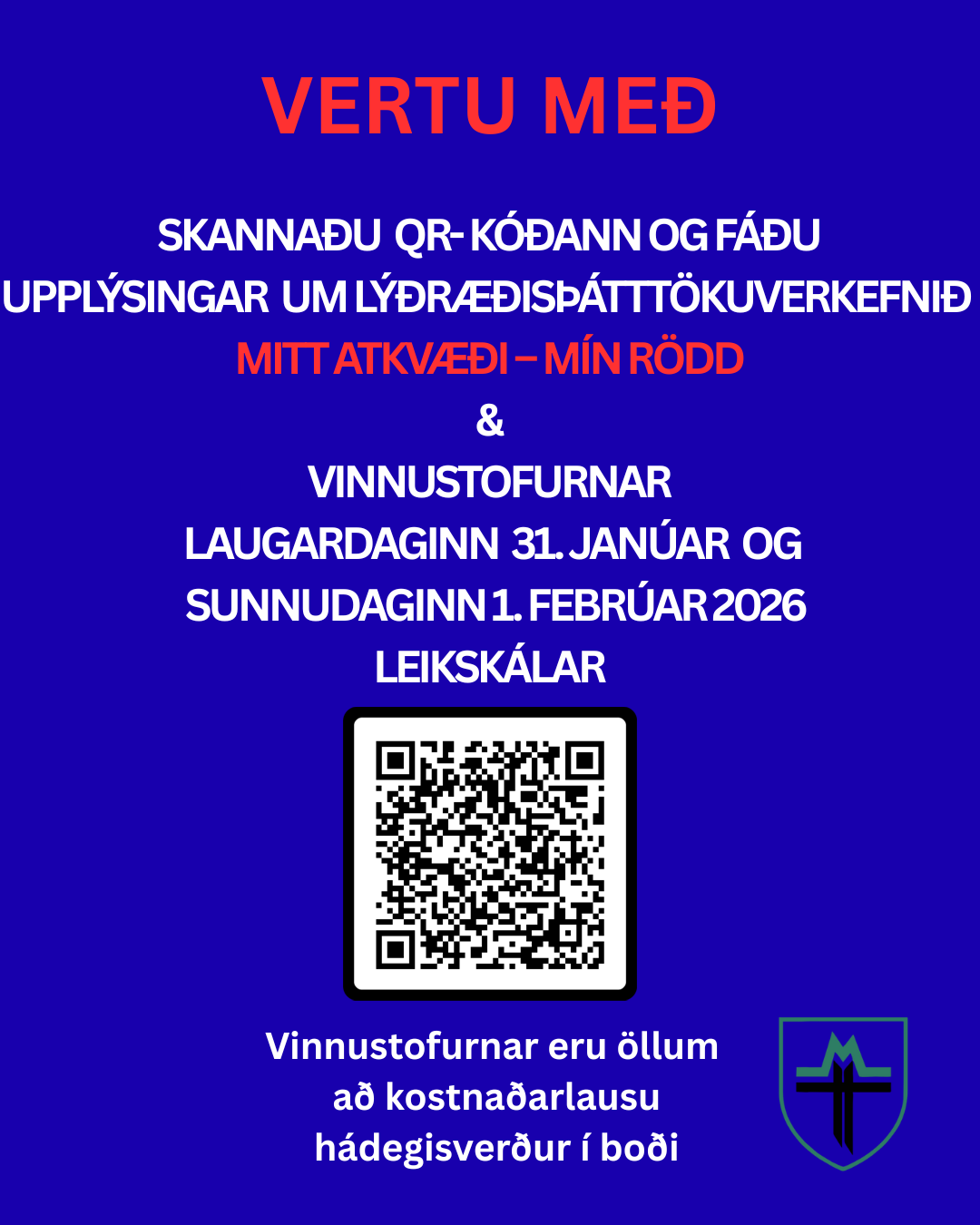 Ef þú hefur áhuga bjóðum við þér að skrá þig hér að neðan til að taka þátt í vinnustofum sem við munum halda laugardaginn 31. janúar og sunnudaginn 1. febrúar 2026. Vinnustofurnar eru öllum að kostnaðarlausu og hádegisverður í boði á þeirri fyrri og börn velkomin á þá seinni.