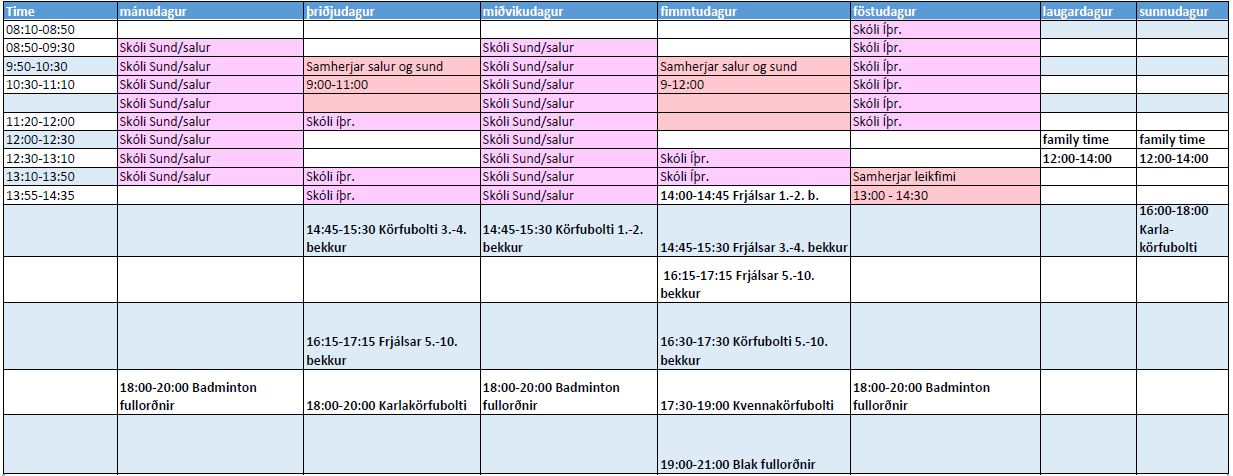 Dagskrá fyrir íþróttasal haustönn 2025